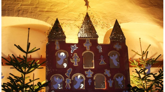 Hver dag åbnes en låge og vi ser hvad der gemmer sig derinde og der læses et vers der passer til figuren bag lågen.