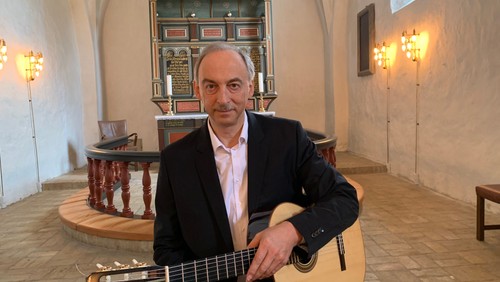 Den aarhusianske guitarist som tidligere har optrådt i både Tersløse og Niløse kan opleves mandag d.4.maj i Tersløse Kirke, hvor han vil spille egne transskriptioner af storslået barokmusik af Scarlatti og Bach, smægtende spanske favoritter af Sor, Albeniz, Tarrega og M. Lopez-Quiroga, spændstige rytmer og smukke melodier i kompositioner af sydamerikanske Barrios-Mangoré og Lauro og sidst men ikke mindst stemningsfuld dansk musik af Frederik Magle og Bent Fabricius-Bjerre. – Den berømte komponist(som døde i 2020, 95 år gammel) hørte Carstens arrangement af ”Mens vi lever”(oprindeligt for cello og klaver) og blev så begejstret, at han opfordrede ham til at lave et helt album med sine kompositioner.
