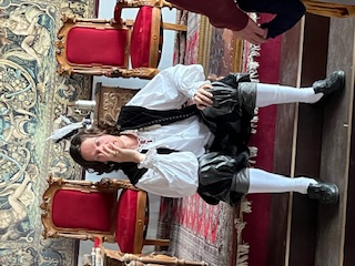 Her er et billede fra tur til Kronborg, hvor der skulle løses opgaver, og man mødte personer (skuespillere) med relation til Kronborg.